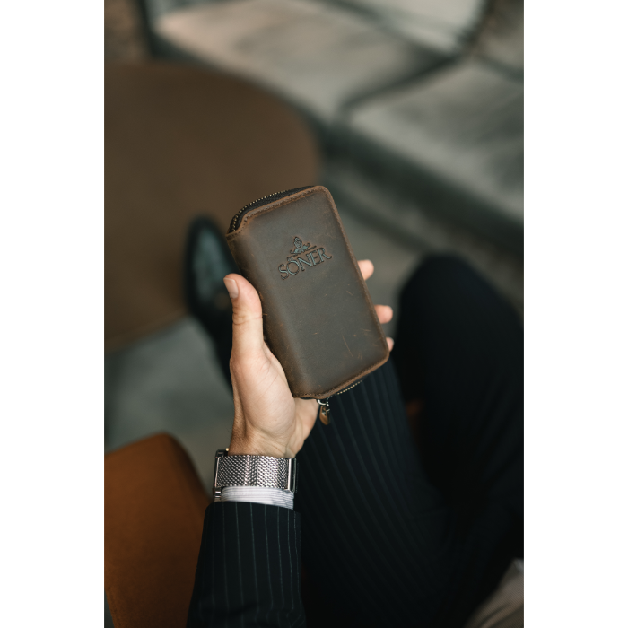 SÖNER’s Classic Brown Leather Watch Case is a favorite for up to 3 watches. It pairs a structured exterior with a soft-lined interior and shaped cushions that hold bracelets and leather straps securely.