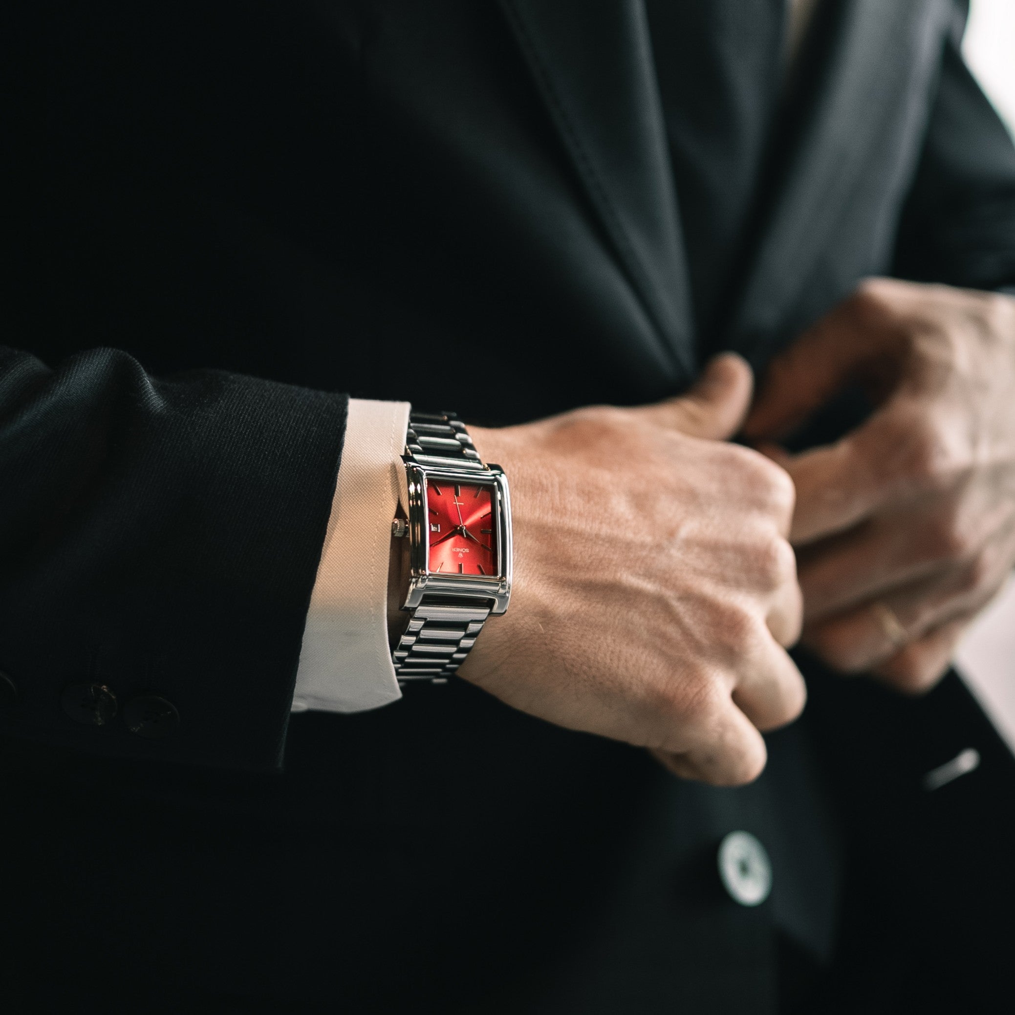 Designed with bold geometries inspired by Art Deco, these watches exude a refined style that never fades. Choose from an array of dial colors, including classic black and white or bold hues like green, blue, and red, each carefully selected to let your personality shine through.