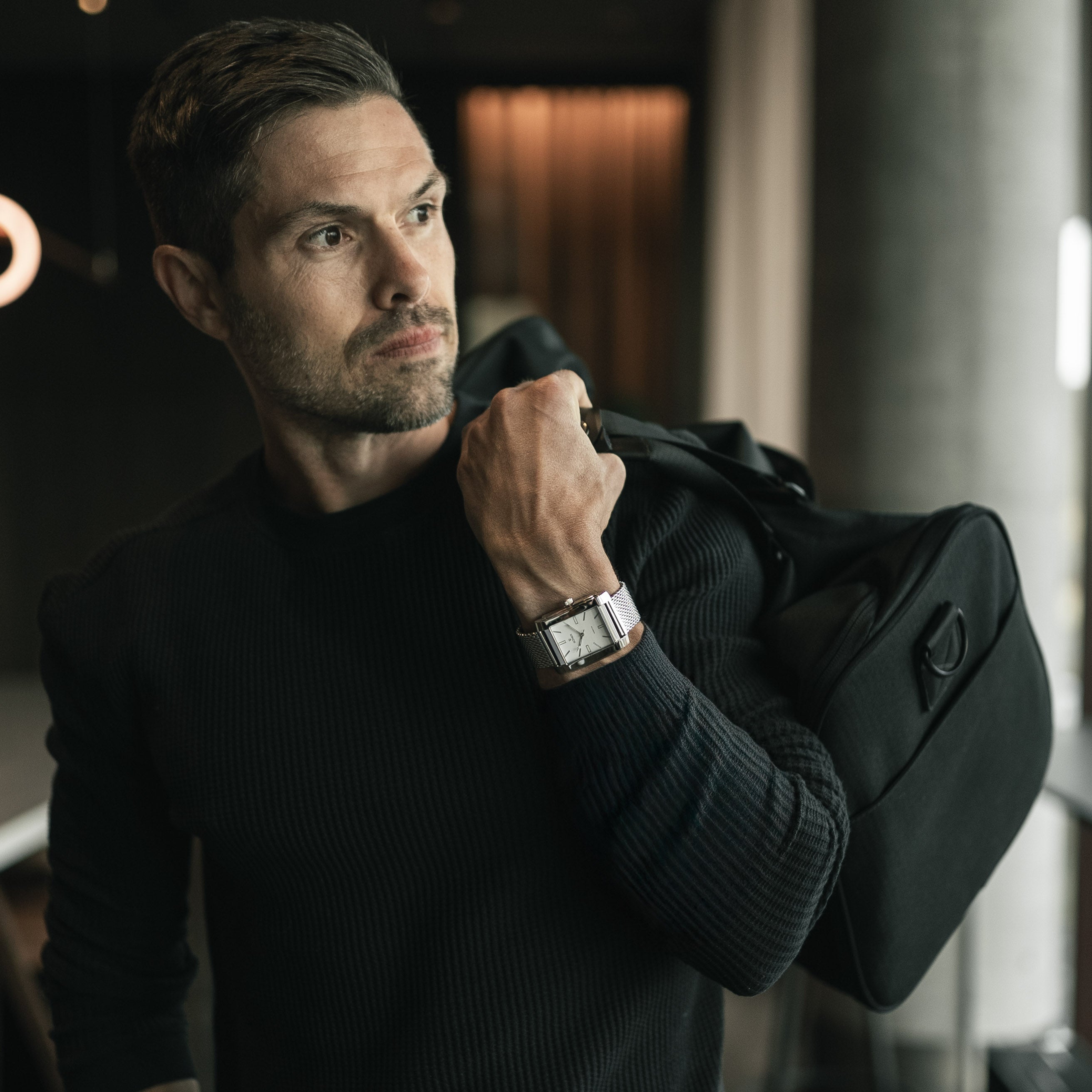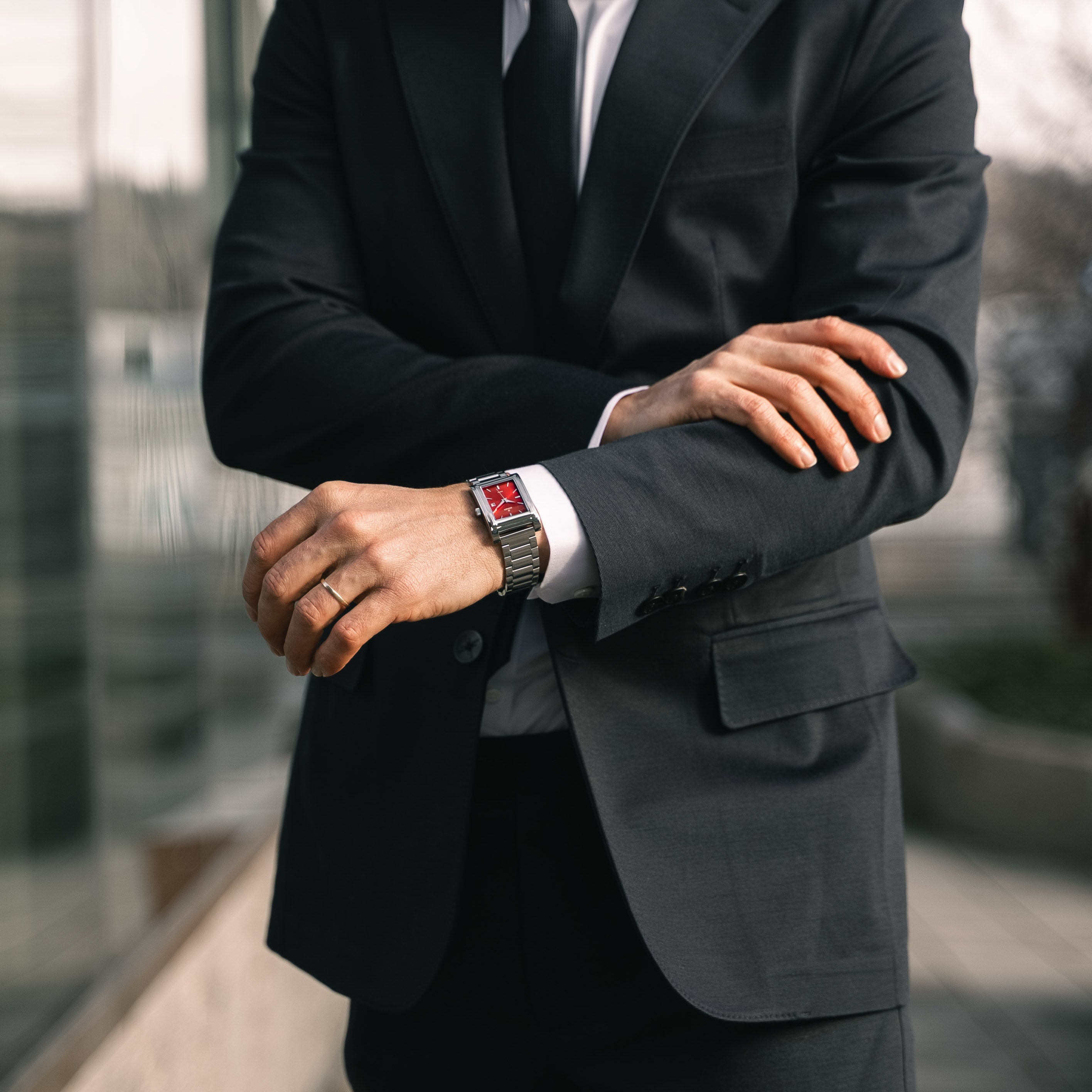 Choose a black dial on a bracelet with automatic movement for measured presence. Verify strap width and rating, add a quick-release leather strap for versatility, and ensure sleeve clearance under dress cuffs.
