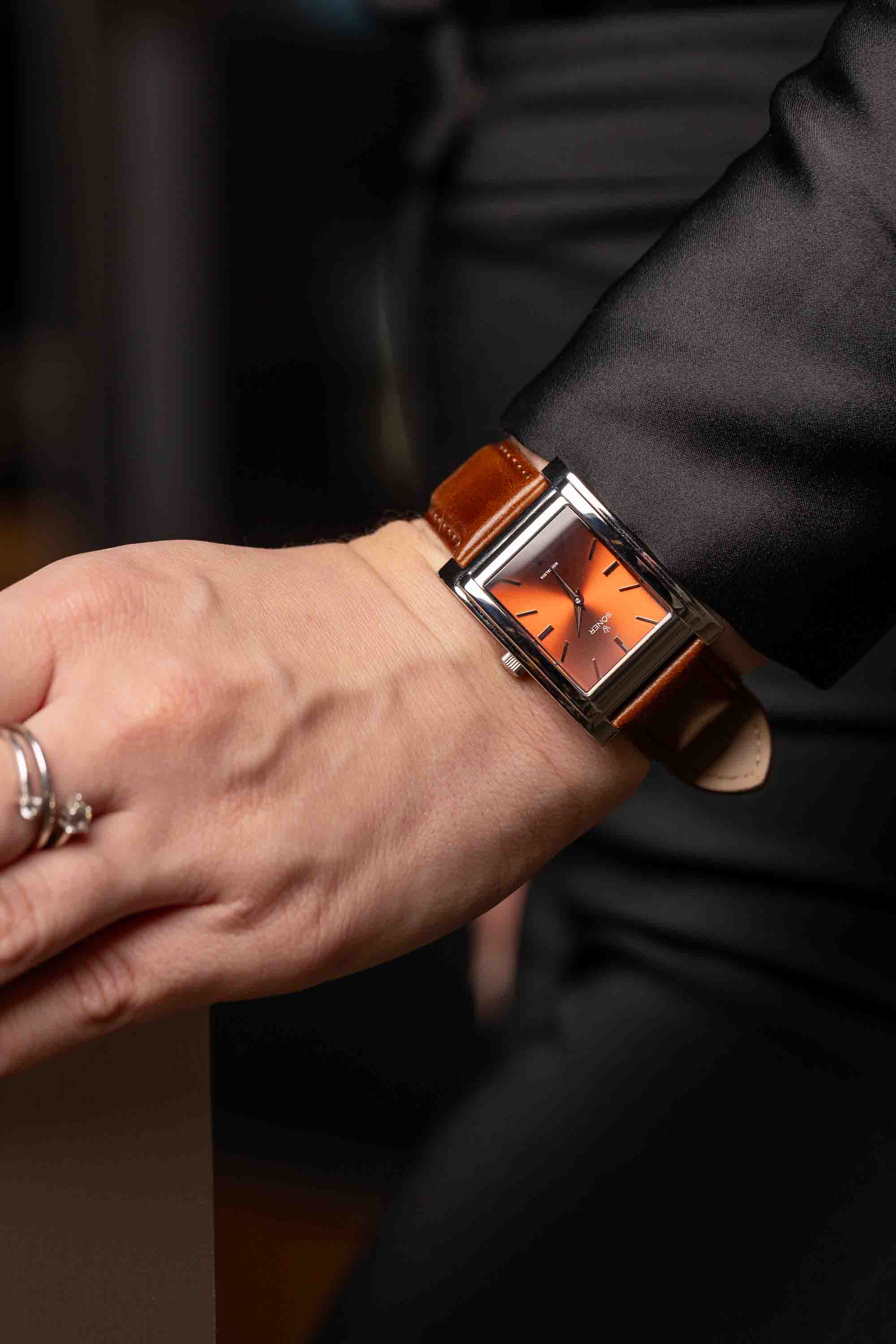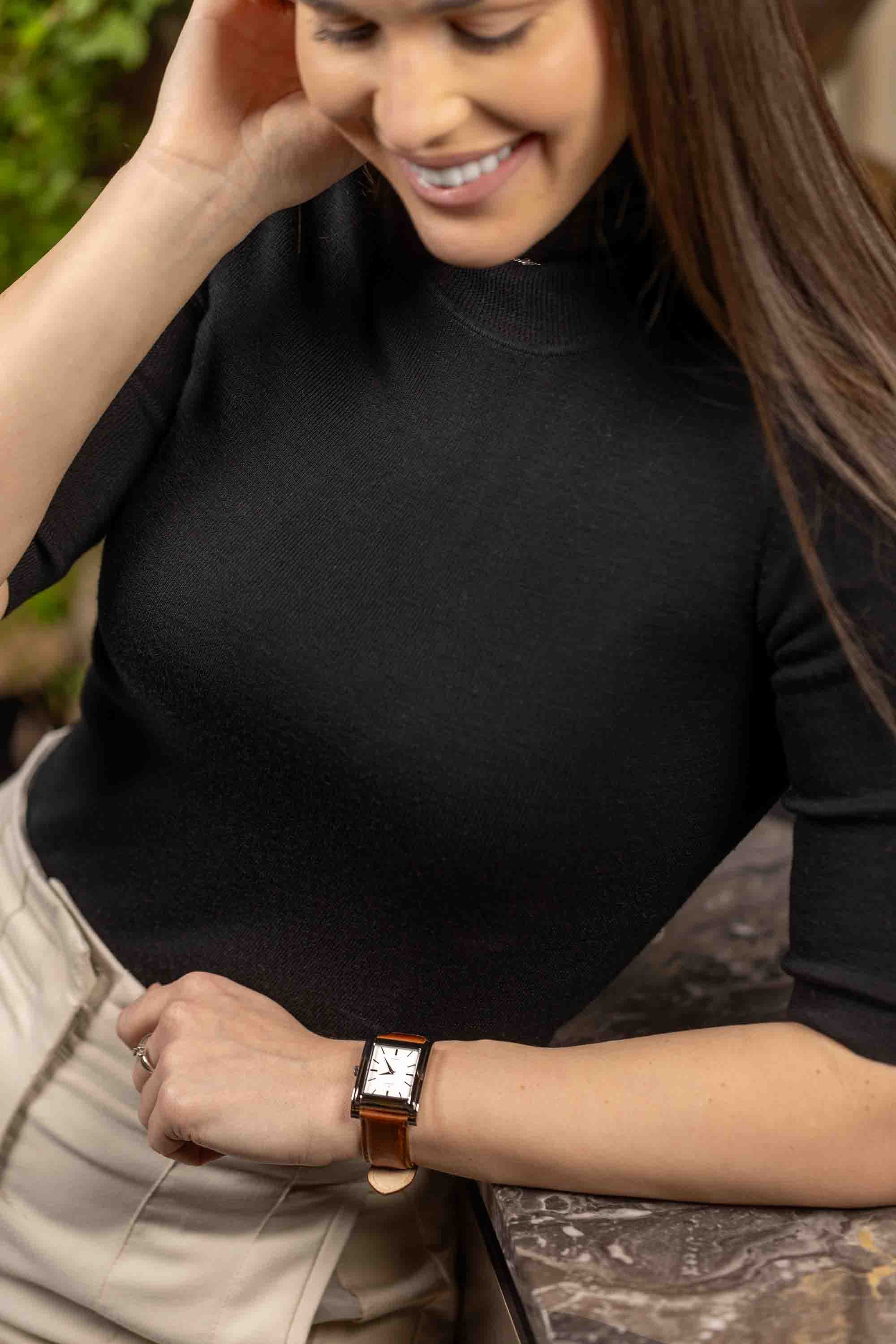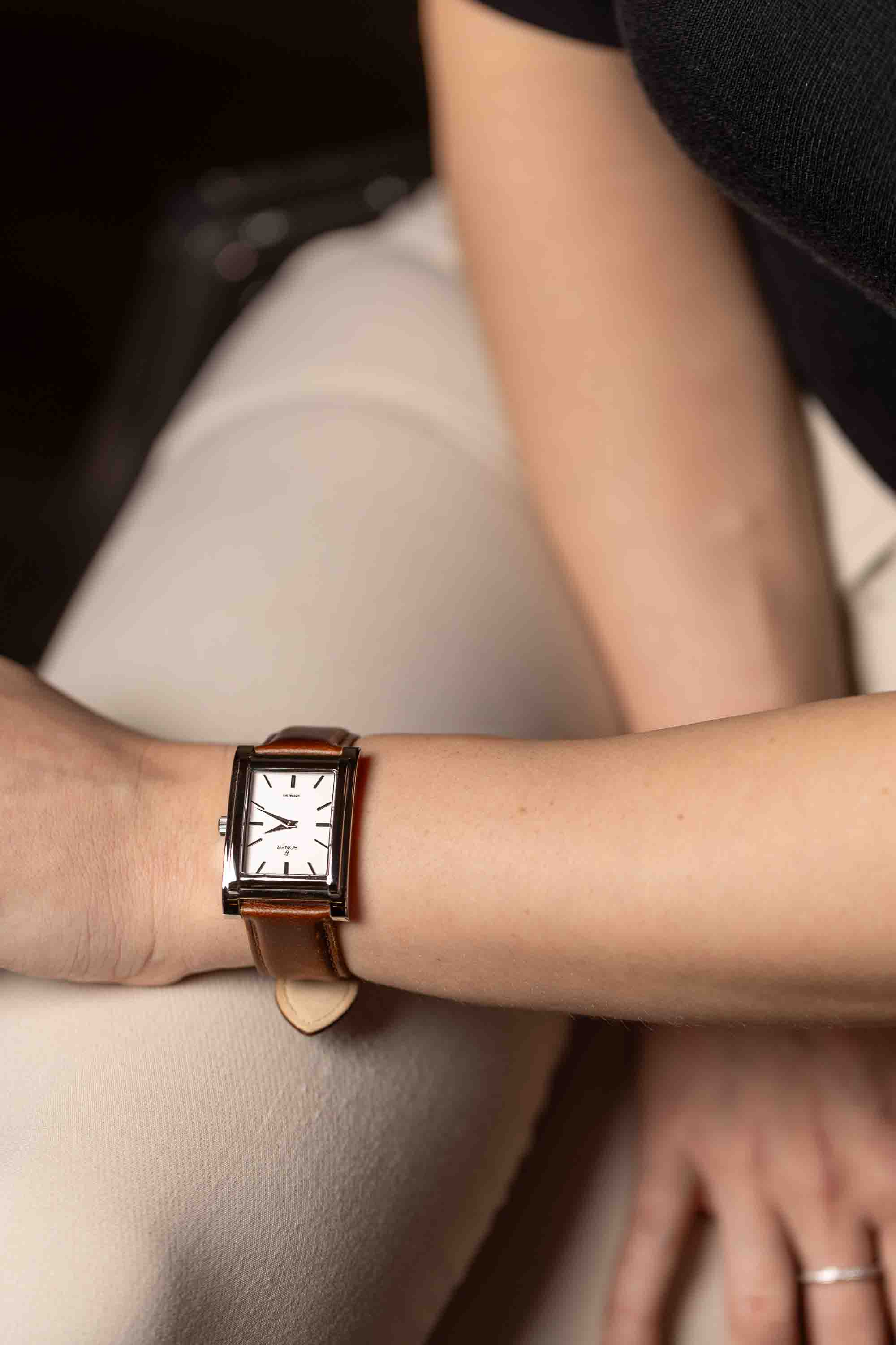 I have been looking for a rectangle watch for a long time, including a day spent on St. Thomas looking for the perfect watch, but to no avail. I don’t know how I hadn’t found Soner on the internet before now, but I’m so glad I did! The face is the perfect (not too small) size and the rich brown band offers the classic “timeless” look I’ve been searching for. I love watches and I change them out so I didn’t want to worry about the battery dying or continuous motion. The 11 year battery is ideal!
