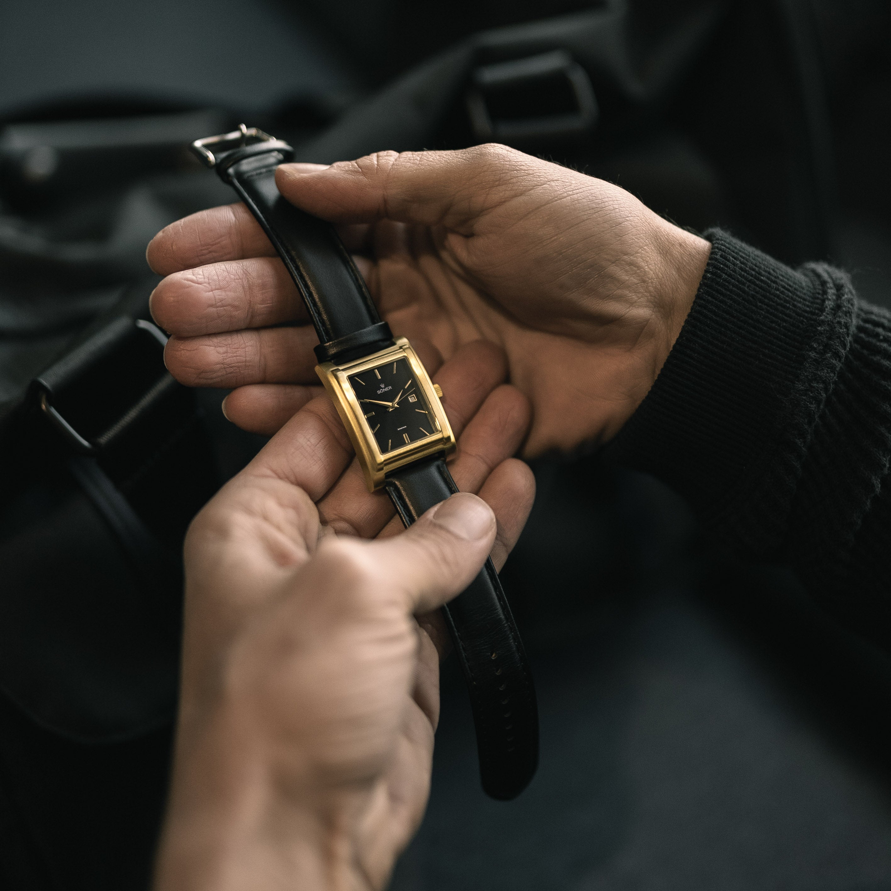 SÖNER’s Amorous Casablanca on leather is a favorite for petite to medium wrists. It pairs a brushed gold-tone rectangular case and clean light dial with sapphire crystal and a Swiss automatic movement with a 42-hour power reserve.