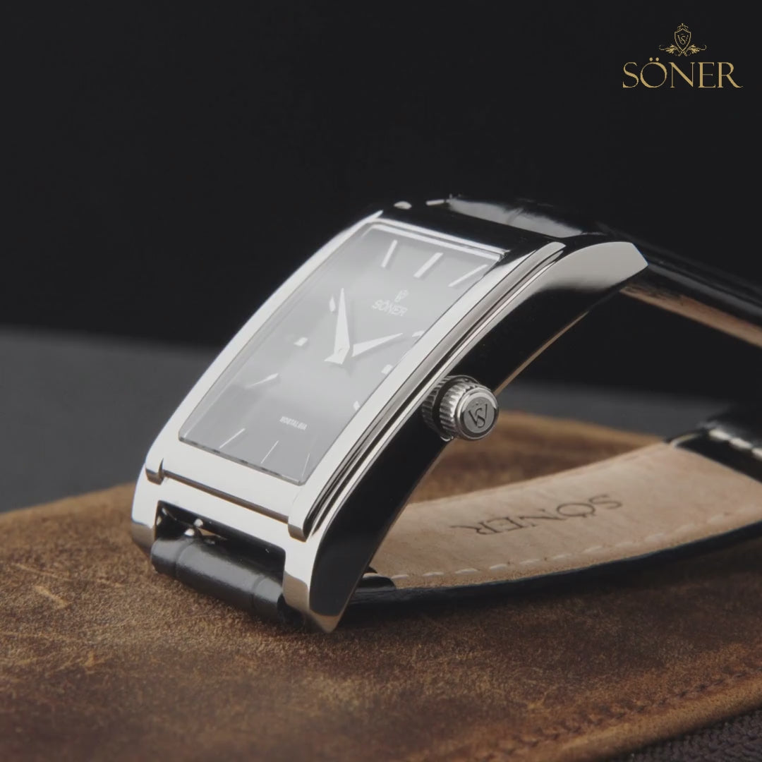 Housed in a slim 28 × 40 mm hardened steel case with a 7 mm profile, the watch sits comfortably on the wrist and transitions easily between formal and everyday wear. A Swiss ETA 901.001 quartz movement ensures precision and an extended 11-year battery life.