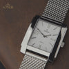 Versatility defines the Momentum Hoover. It is available with a genuine leather strap in a range of refined tones or a stainless steel mesh bracelet, each option offering a distinct character. The rectangular silhouette sits comfortably on the wrist, its proportions - 35 by 45 millimetres, 10 millimetres thick-balancing presence with subtlety. Every detail, from the engraved buckle to the arched case back, is considered for long-term enjoyment.